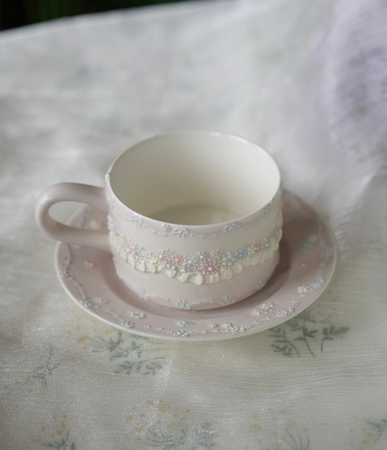 Un ensemble de tasses en céramique aux teintes pastel douces, orné de fleurs en relief, de détails délicats et de fines textures ondulées. Sa couleur crème et sa forme lisse lui confèrent une douceur apaisante, idéale pour savourer un café matinal tranquille ou un thé l'après-midi. Un ravissant petit ensemble qui apporte une touche de douceur et de charme à votre quotidien.