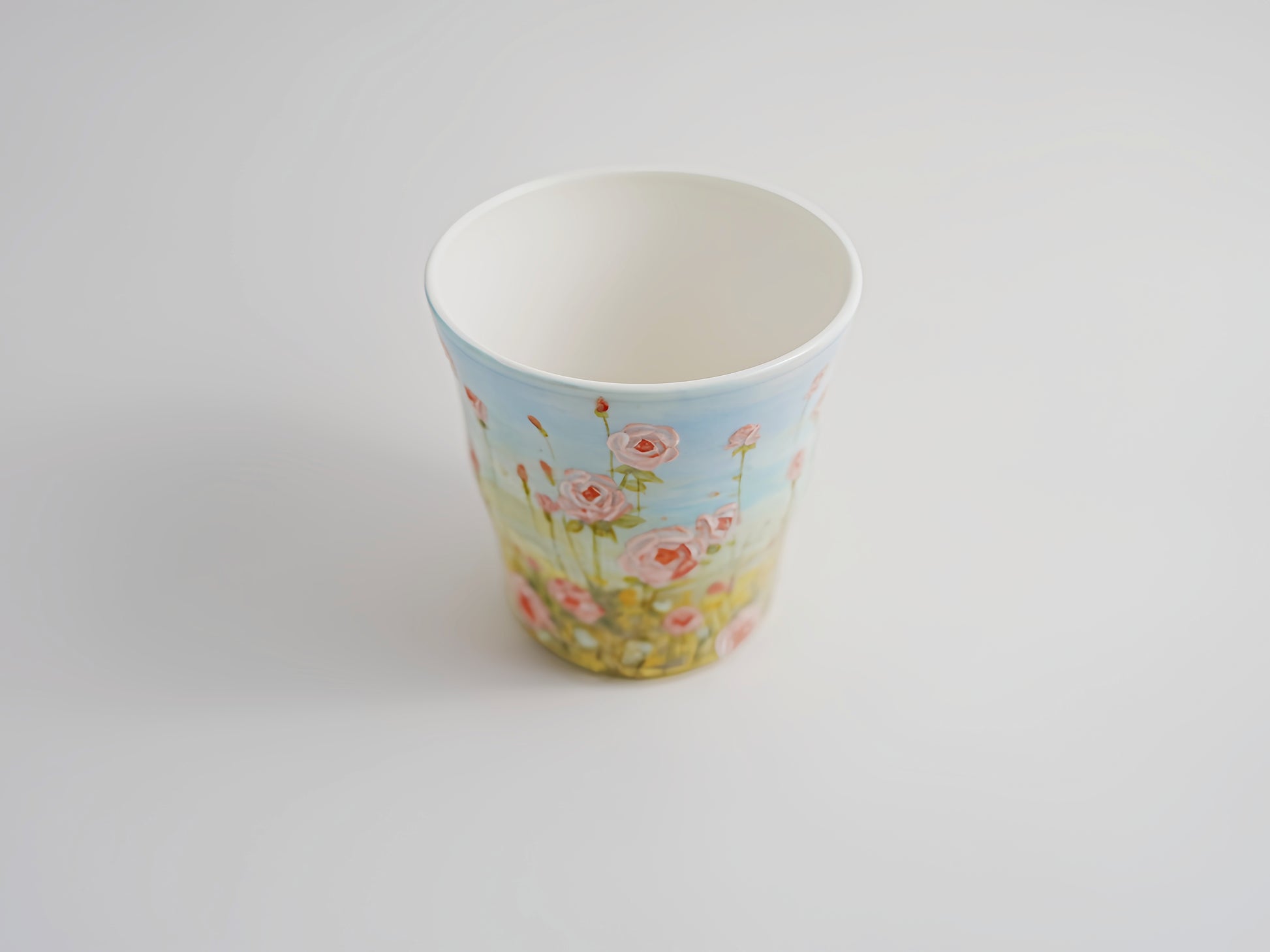 This handmade and painted ceramic mug comes with delicate floral touches and a smooth, comfortable feel. The details are subtle and warm, giving it a handmade look without feeling fussy. An easy, everyday mug that makes small moments feel a bit nicer.
