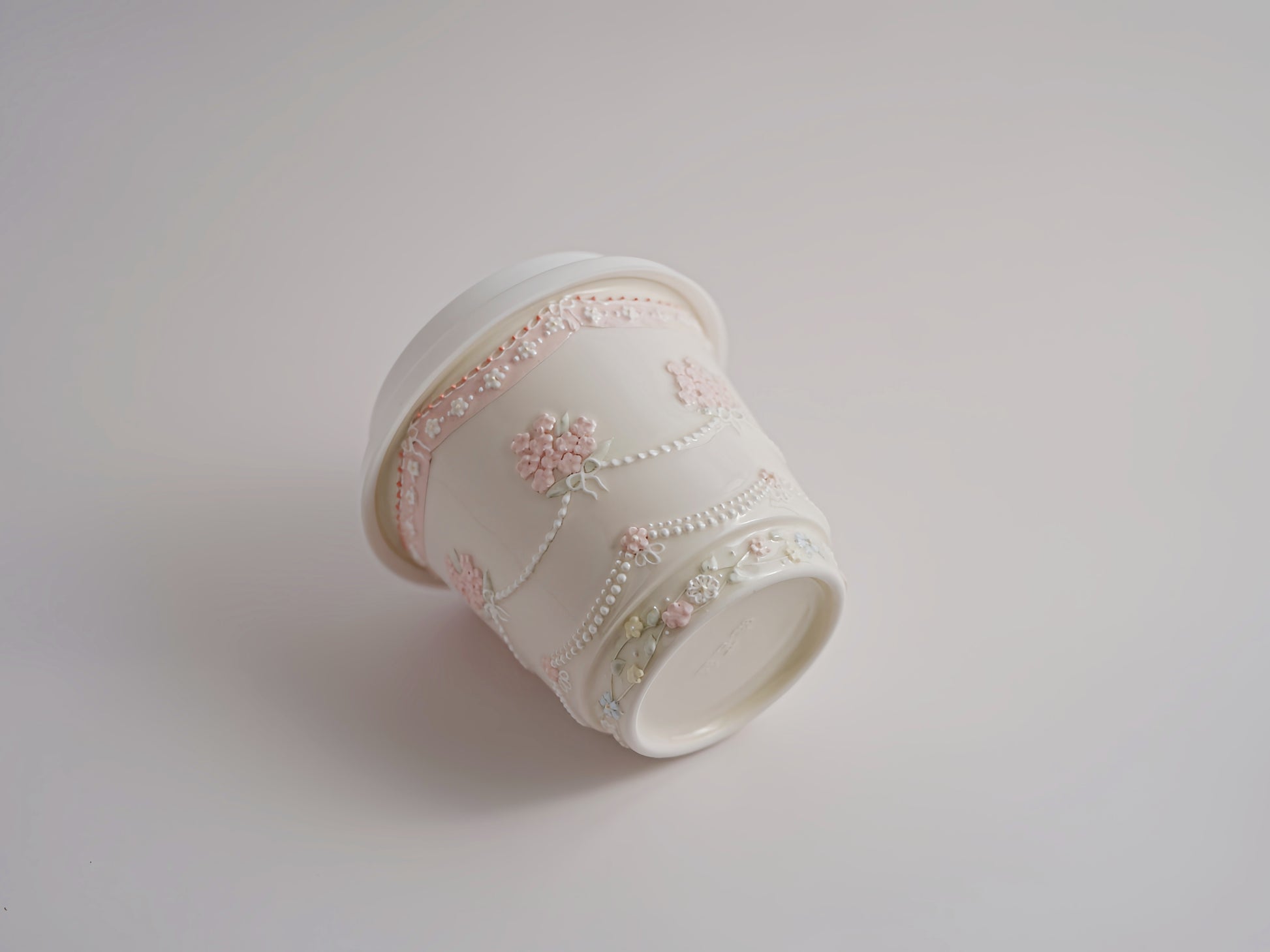 This ceramic mug comes with a soft, reusable lid, making it easy to take your drink along. The gentle floral details and smooth glaze give it a calm, handmade feel. Perfect for coffee, tea, or any quiet moment on the go.